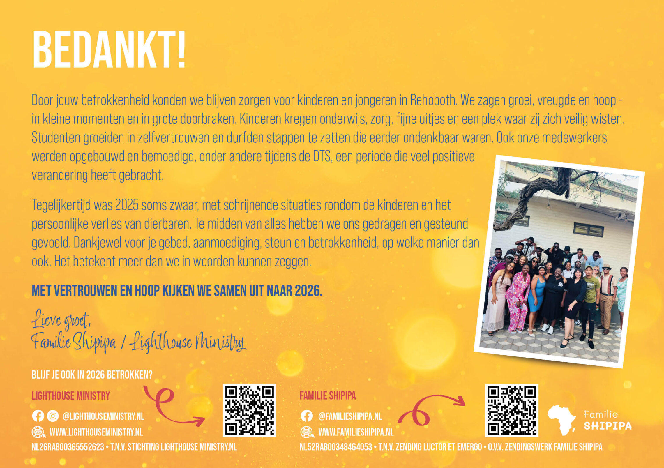 Wat zijn we dankbaar met jouw steun en betrokkenheid op wat voor manier dan ook. Hierdoor konden we ook in 2025 blijven investeren in kinderen, jongeren en medewerkers in Rehoboth.…